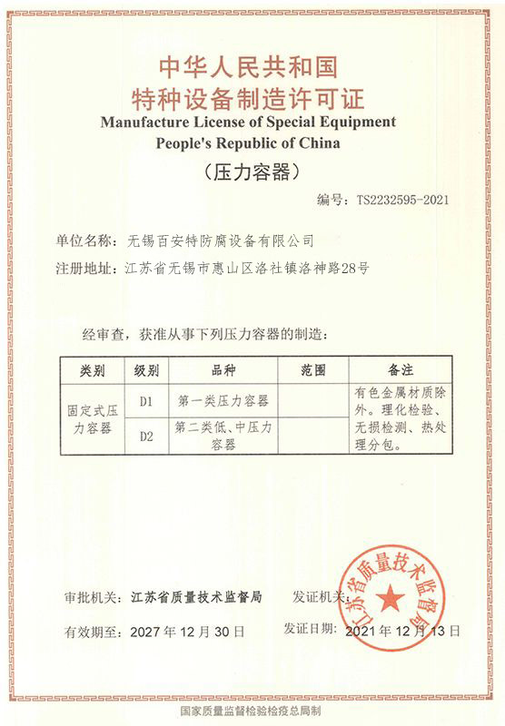 無錫百安特防腐設備有限公司坐落在美麗的湖濱城市無錫,專注于防腐設備制造商與出口